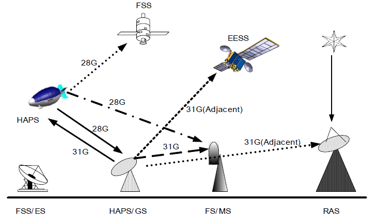 Hội nghị Thông tin vô tuyến thế giới WRC-97, WRC-2000 và WRC-12 đã xác định các băng tần cho HAPS gồm: 2 GHz, 6 GHz, 27/31 GHz và 47/48 GHz. Hội nghị WRC-19 đã thống nhất phân bổ băng tần 31-31.3 GHz và 38-39.5 GHz cho HAPS sử dụng nghiệp vụ cố định trên toàn thế giới; băng tần 47.2-47.5 GHz và 47.9-48.2 GHz cũng đạt được sự hài hòa toàn cầu cho triển khai hệ thống HAPS.
