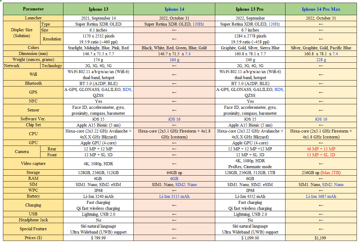 Gia đình iPhone 14 sắp tới của Apple dự kiến sẽ ra mắt vào mùa thu (31/10/2022). Và bao gồm bốn mẫu: iPhone 14, iPhone 14 Max, iPhone 14 Pro và iPhone 14 Pro Max. Mô hình “mini” sẽ bị ngừng sản xuất sau khi doanh số bán hàng ảm đạm của iPhone 13 mini.
